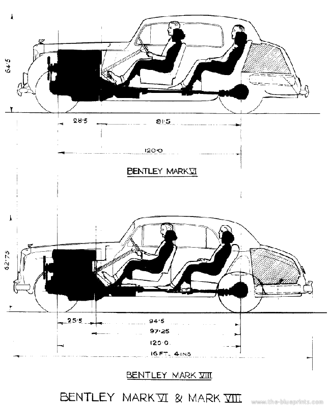 Bentley Mk VI and Mk VIII elevation drawing - Bentley - drawings, dimensions, pictures of the car