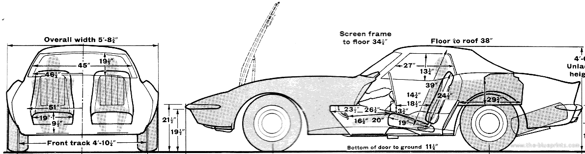 Chevrolet Corvette C3 Sting Ray (1968) - Chevrolet - drawings, dimensions, pictures of the car