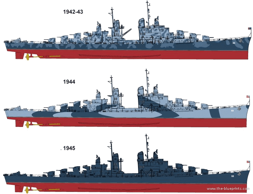 Cruiser USS CL-53 San Diego [Light Cruiser] - drawings, dimensions, figures