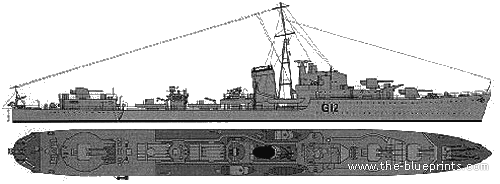 Destroyer HMS Kashmir (Destroyer) (1940) - drawings, dimensions, pictures