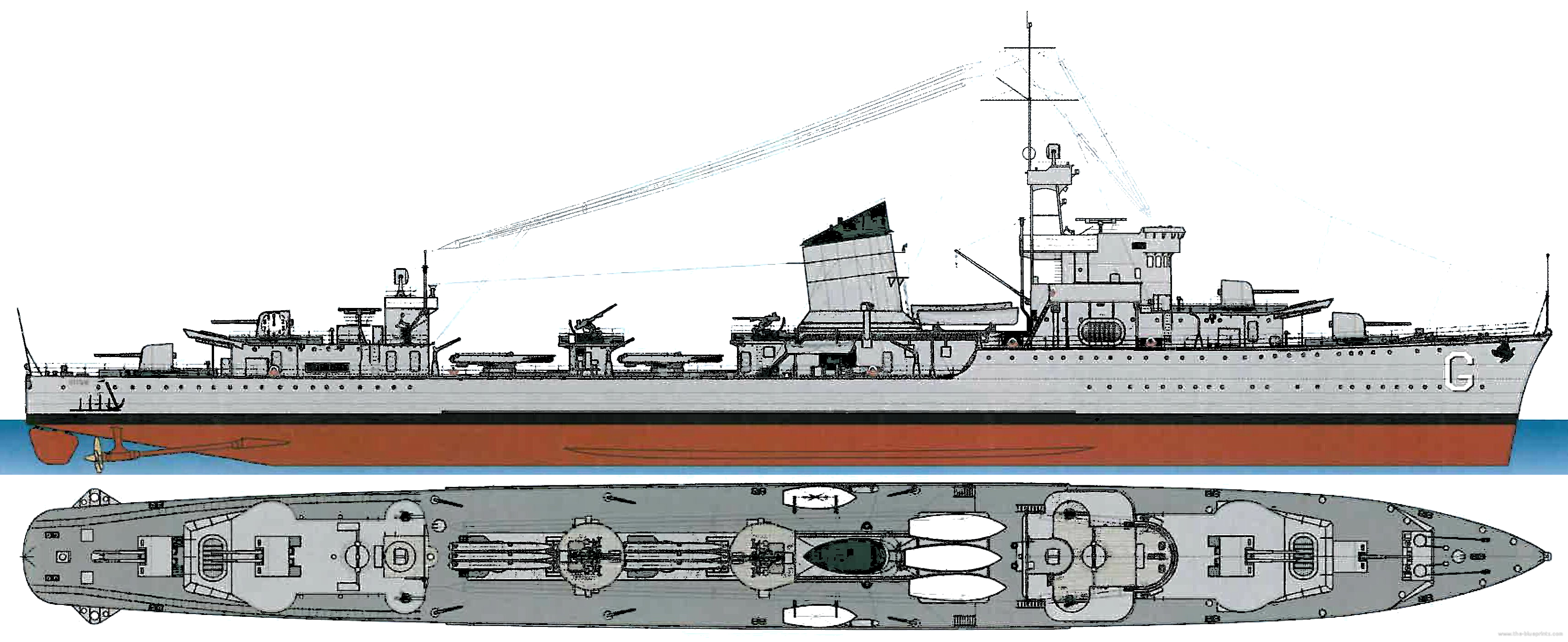 Destroyer ORP Grom 1937 (Destroyer) - drawings, dimensions, pictures