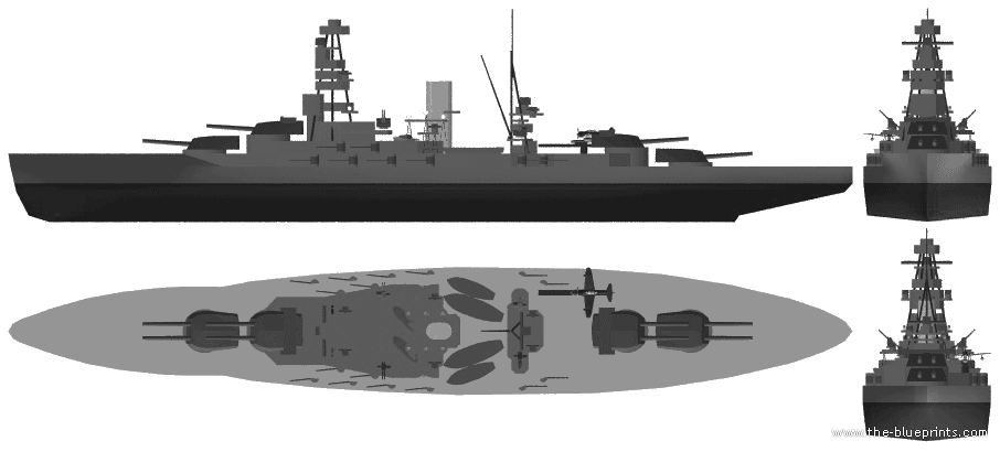 IJN Nagato (Battleship) (1935) - drawings, dimensions, pictures