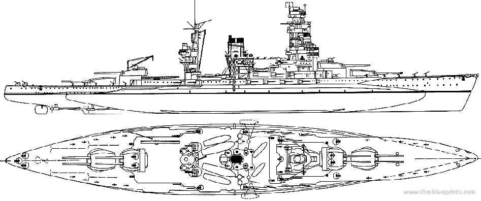 IJN Nagato warship (1945) - drawings, dimensions, pictures