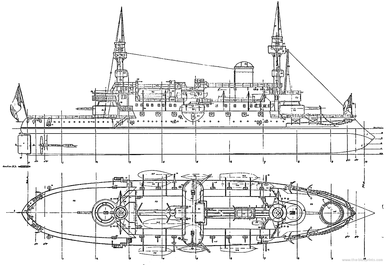 NMF Hoche (Battleship) (1886) - drawings, dimensions, pictures