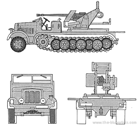 Tank Sd.Kfz. 7-2 + 37mm flak 36 - drawings, dimensions, figures