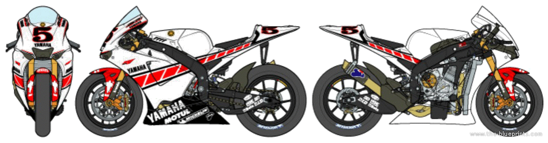 Yamaha YZR-M1 motorcycle (2005) - drawings, dimensions, figures