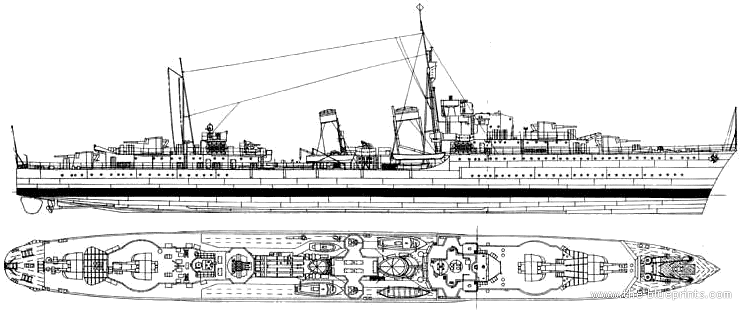 Боевой корабль HMS Eskimo (Tribal Class Destroyer) (1939) - чертежи, габариты, рисунки
