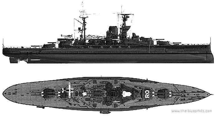 Боевой корабль HMS Royal Oak (1938) - чертежи, габариты, рисунки