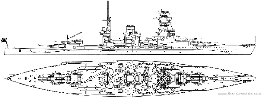 Боевой корабль IJN Nagato - чертежи, габариты, рисунки