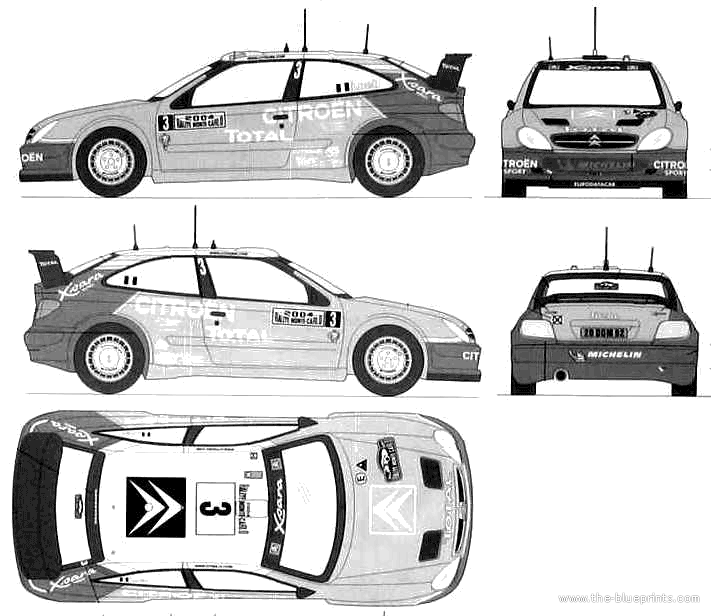 Citroen Xsara WRC (2004) - Ситроен - чертежи, габариты, рисунки автомобиля