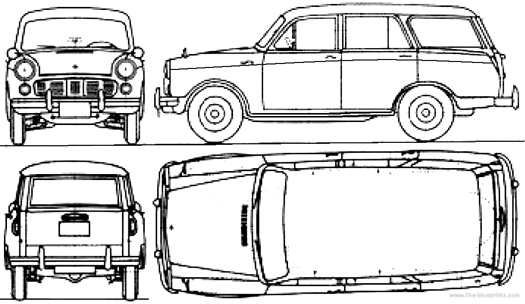 Datsun 310 Bluebird Wagon (1960) - Датсун - чертежи, габариты, рисунки автомобиля