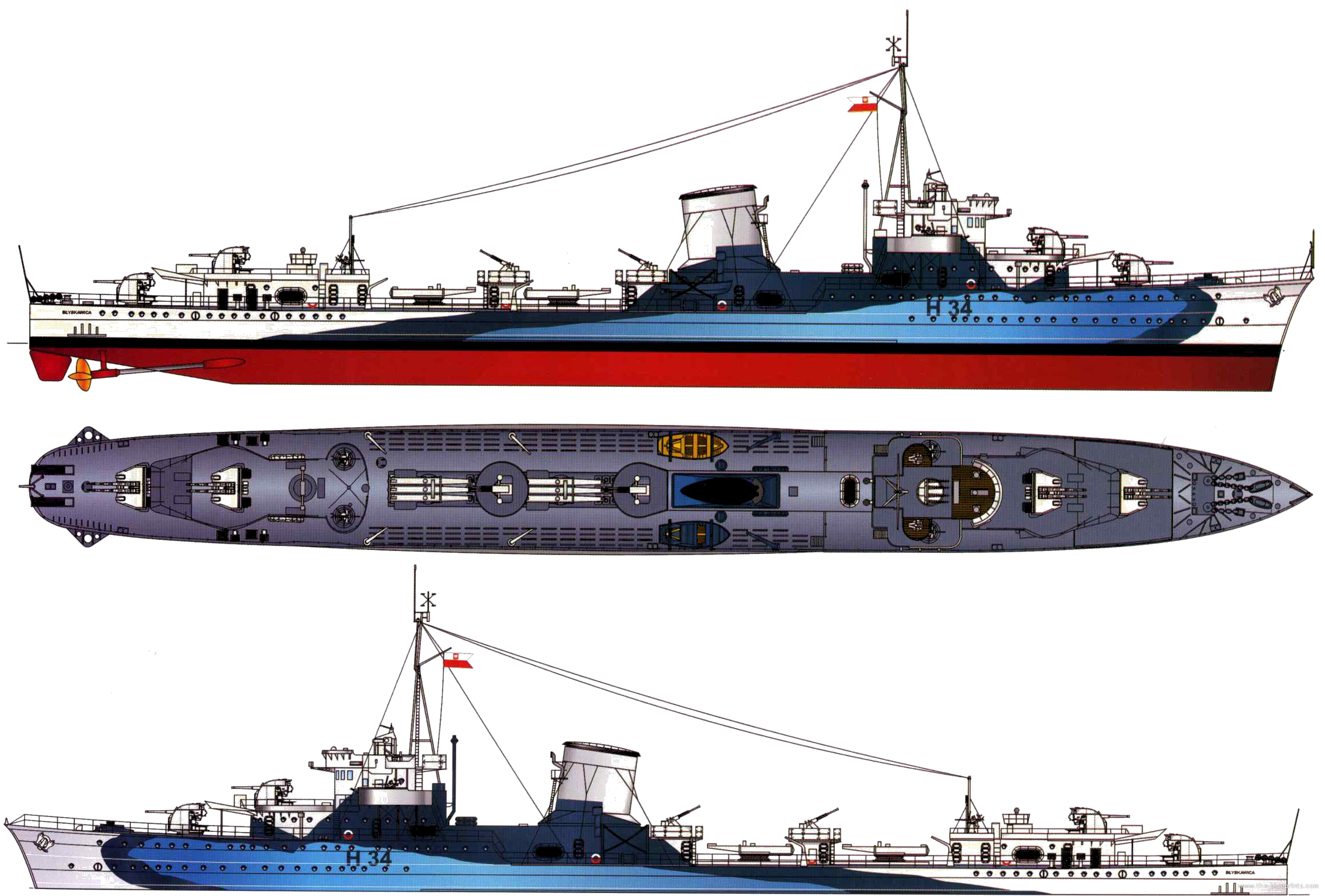 Эсминец ORP Blyskawica H34 1942 [Destroyer] - чертежи, габариты, рисунки