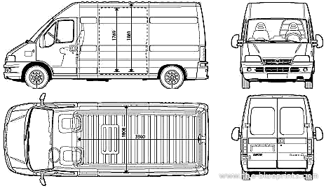 Fiat Ducato Long Wheel Base - Фиат - чертежи, габариты, рисунки автомобиля