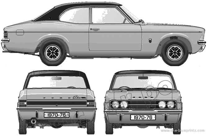 Ford Cortina Mk.III GLX 2000 2-Door (1976) - Форд - чертежи, габариты, рисунки автомобиля