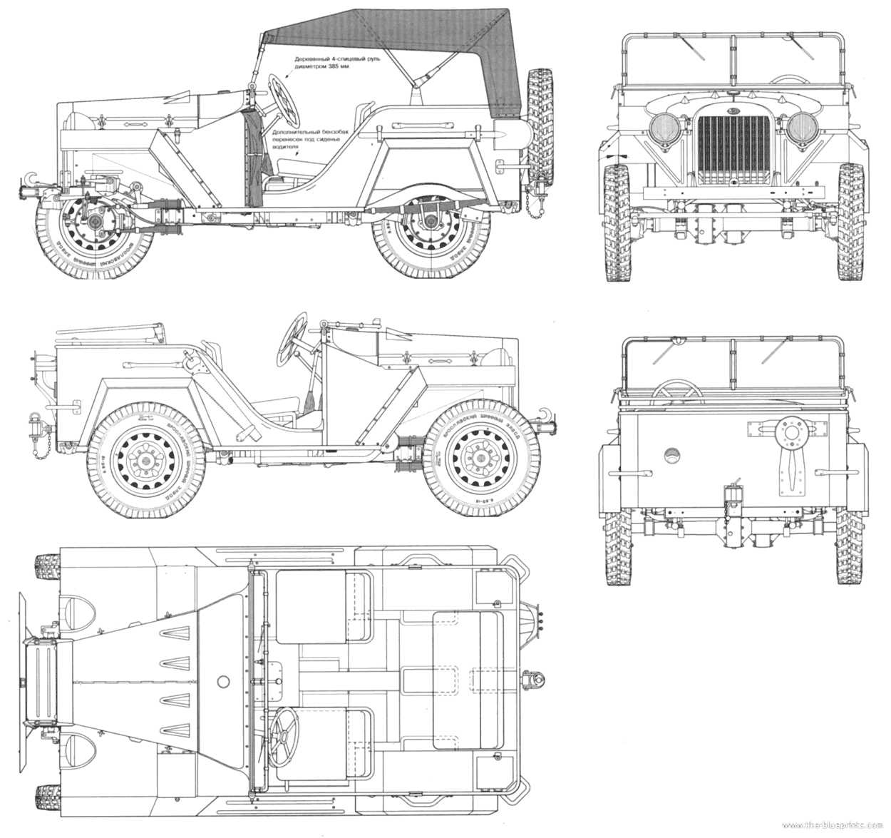 GAZ-67 (1943) - ГАЗ - чертежи, габариты, рисунки автомобиля