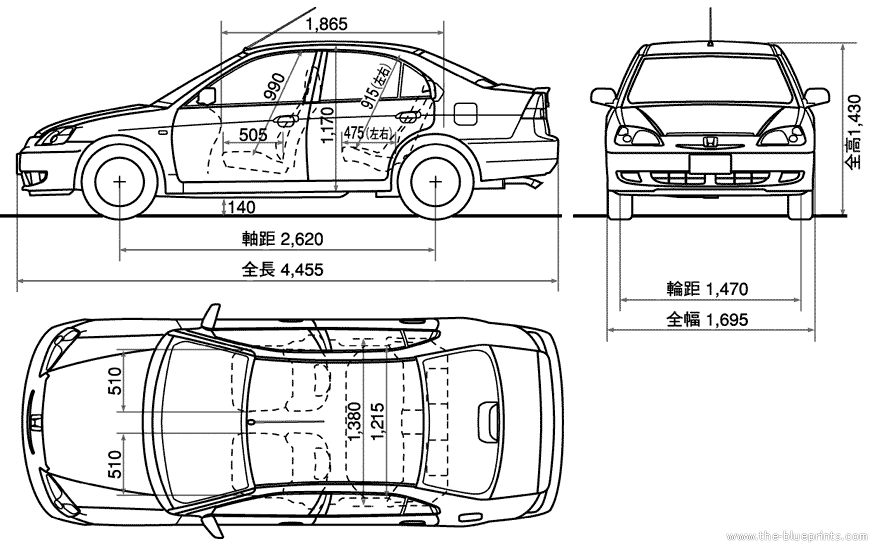 Honda Civic Hybrid - Хонда - чертежи, габариты, рисунки автомобиля