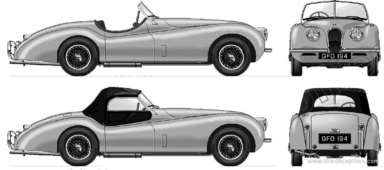 Jaguar 120 Roadster (1948) - Ягуар - чертежи, габариты, рисунки автомобиля