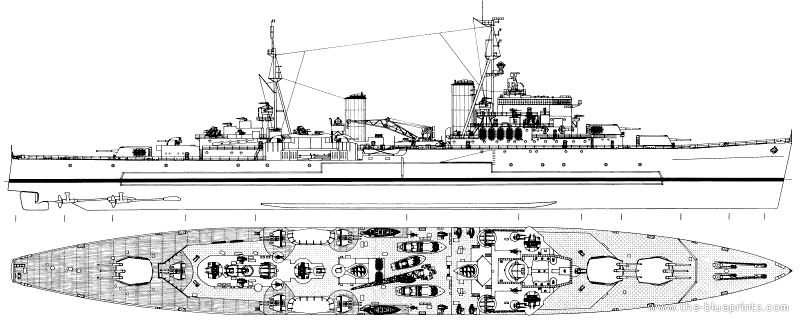 Корабль HMS Swiftsure (Light Cruiser) (1944) - чертежи, габариты, рисунки
