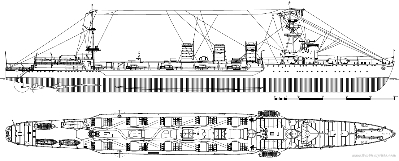 Корабль IJN Kitakami [Light Cruiser] (1941) - чертежи, габариты, рисунки