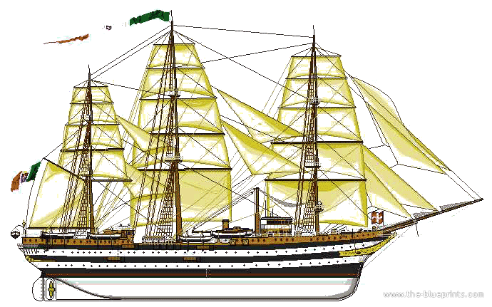 Корабль RN Amerigo Vespucci - чертежи, габариты, рисунки