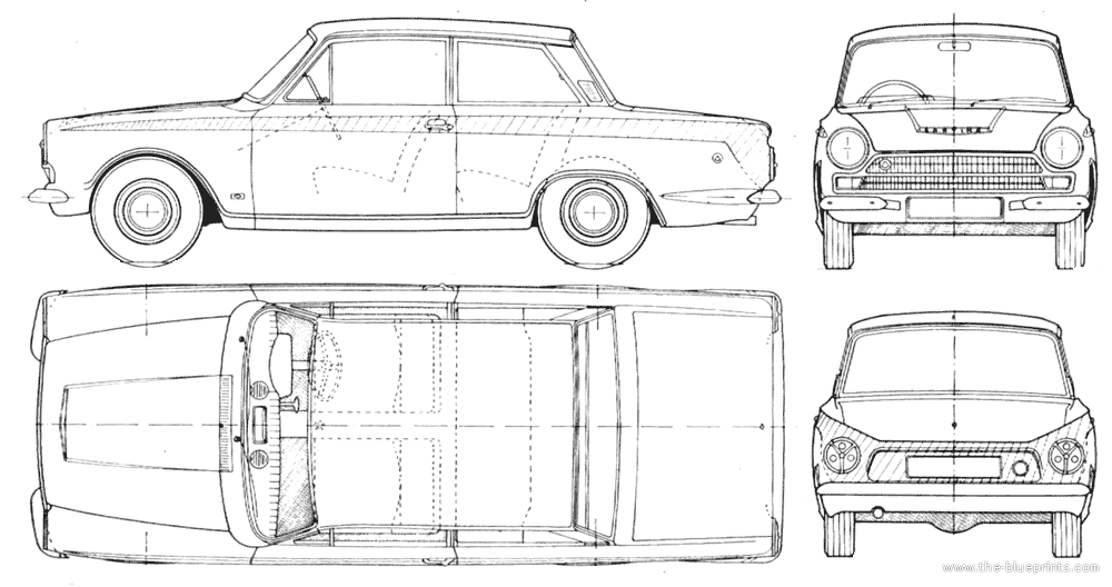 Lotus Ford Cortina - Лотус - чертежи, габариты, рисунки автомобиля