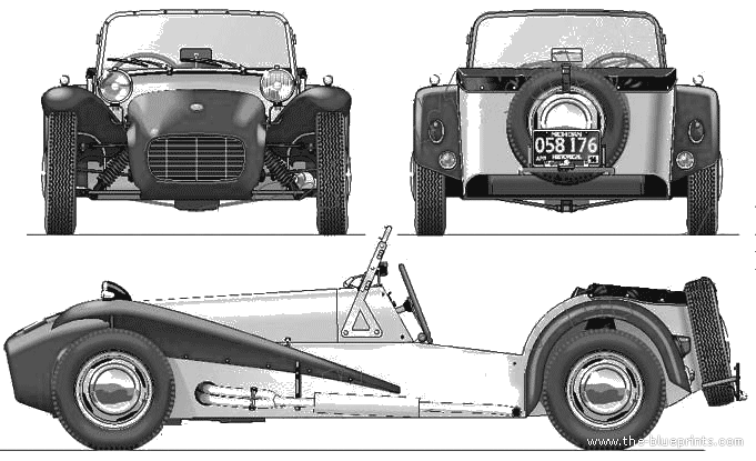 Lotus Seven Series II (1961) - Лотус - чертежи, габариты, рисунки автомобиля