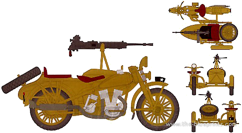 Мотоцикл IJA Type 97 Motorcycle Rikuo + Type 92 MG - чертежи, габариты, рисунки