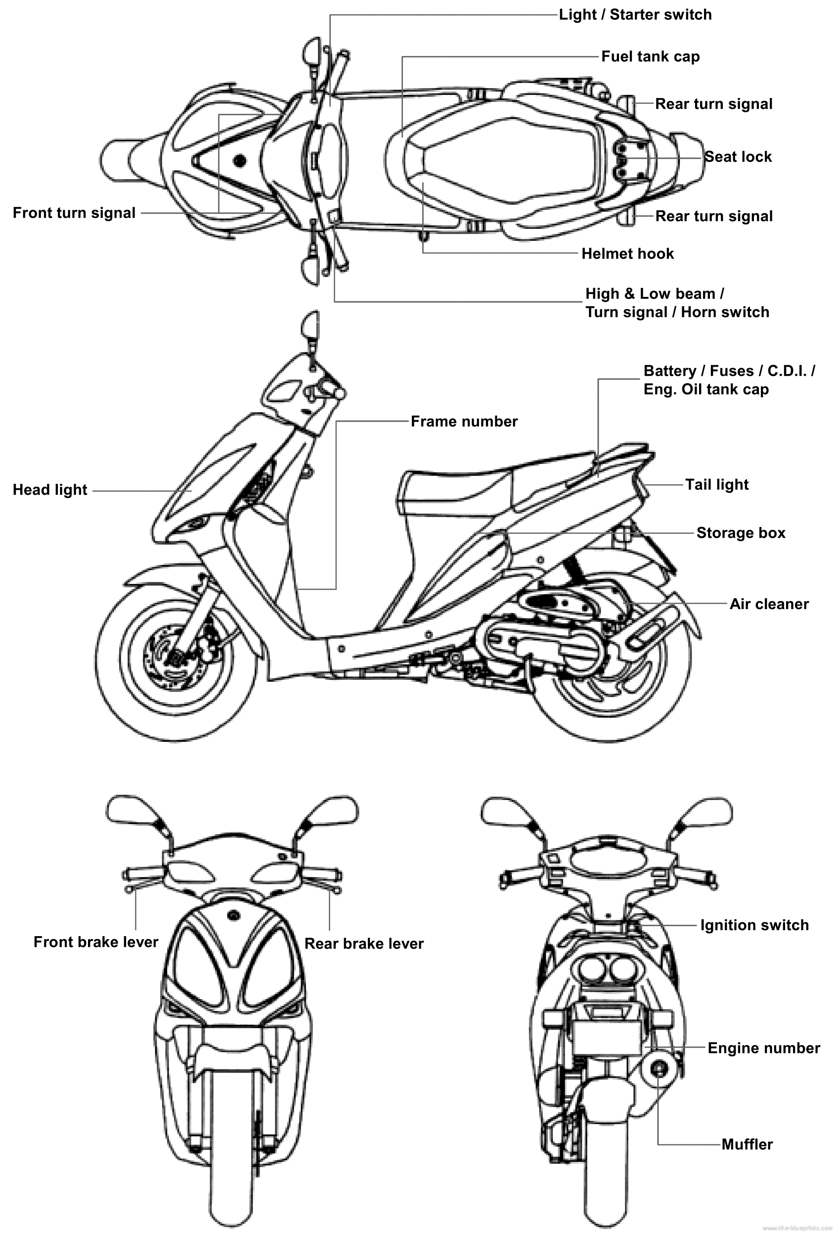 Мотоцикл SYM JET EURO Series - чертежи, габариты, рисунки