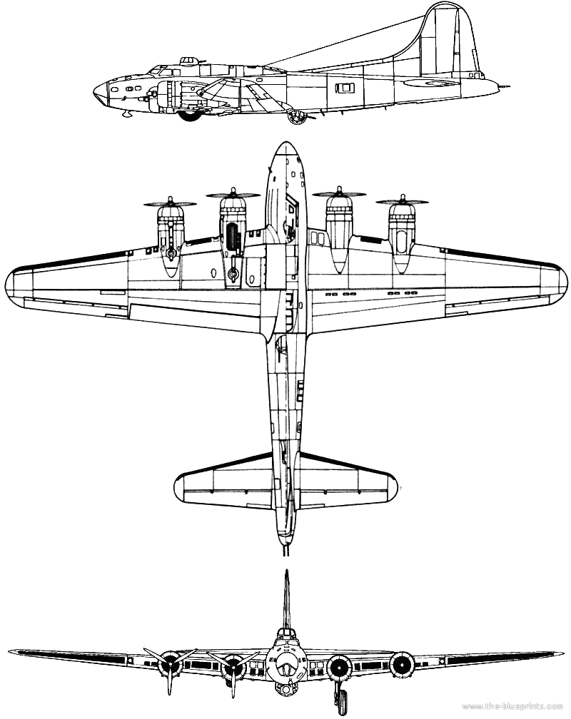 Самолет Boeing B-17F Flying Fortress - чертежи, габариты, рисунки