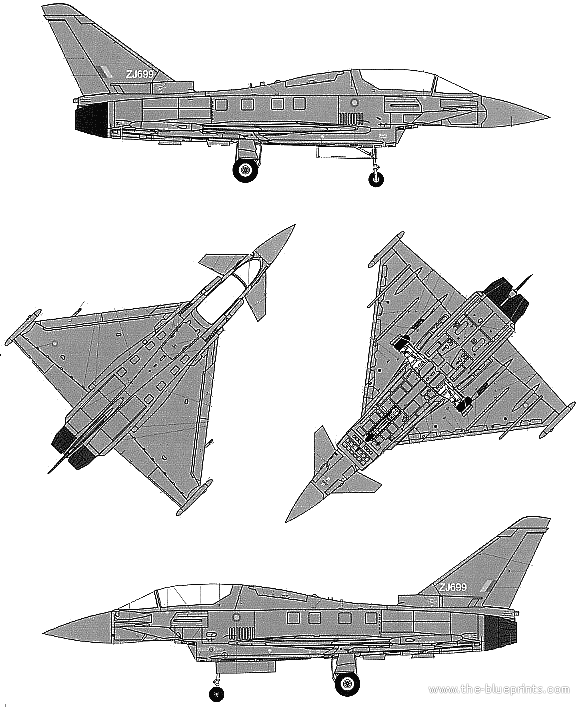 Самолет Euro Fighter EF-2000B Typhoon - чертежи, габариты, рисунки