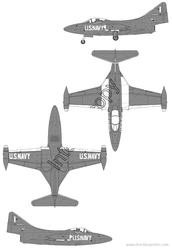 Самолет Grumman F9F-5 Panther - чертежи, габариты, рисунки