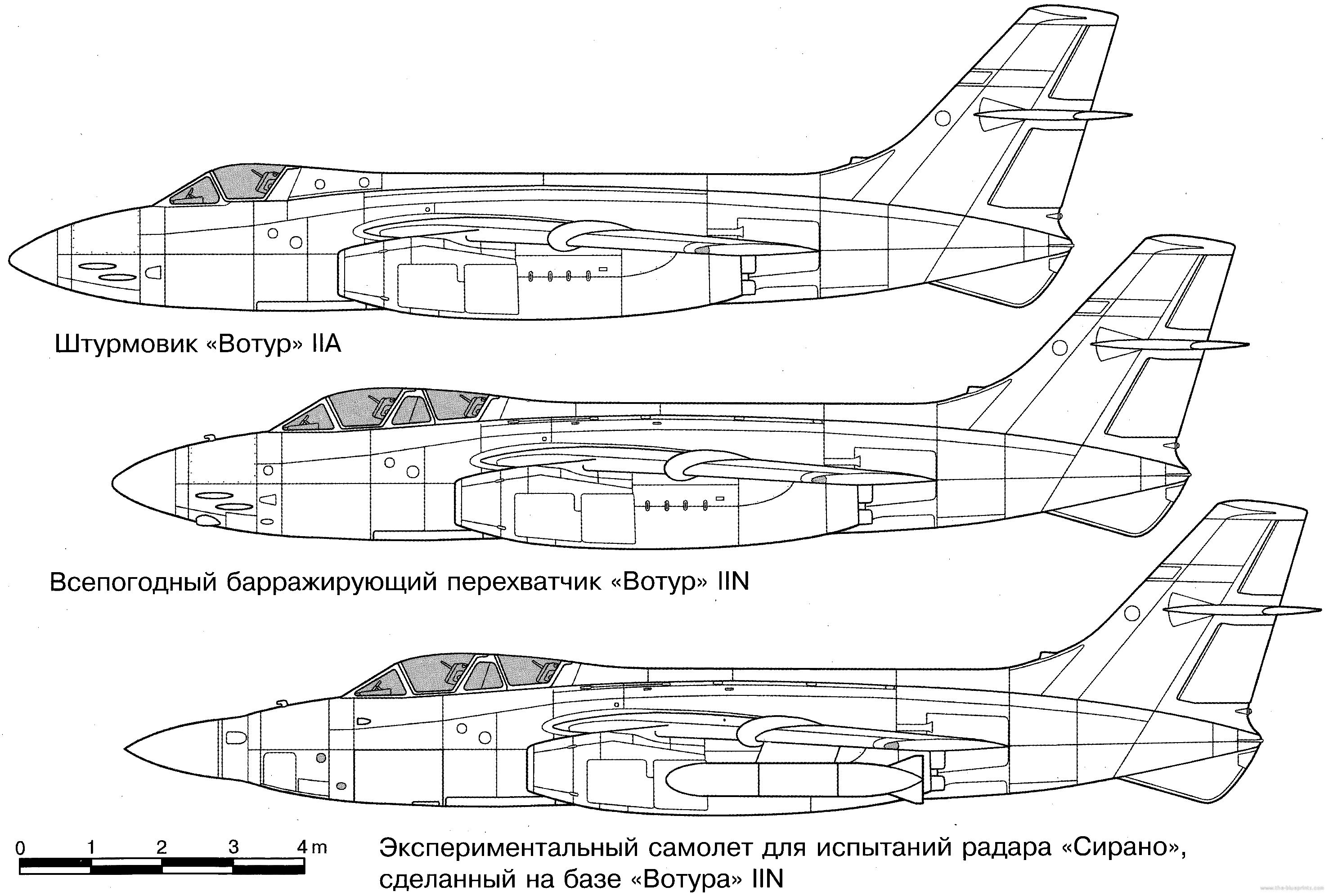 Самолет SNSACO SO.4050 Vautour IIB - чертежи, габариты, рисунки