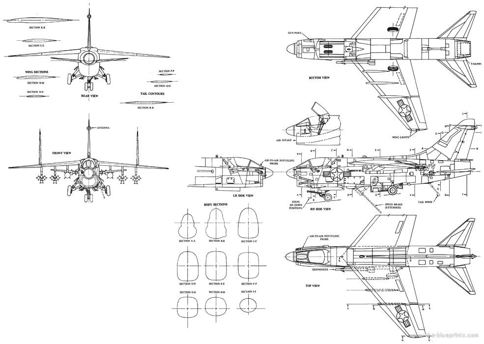 Самолет Vought A-7E - чертежи, габариты, рисунки