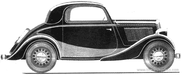 Simca 6 Faux Cabriolet (1936) - Симка - чертежи, габариты, рисунки автомобиля