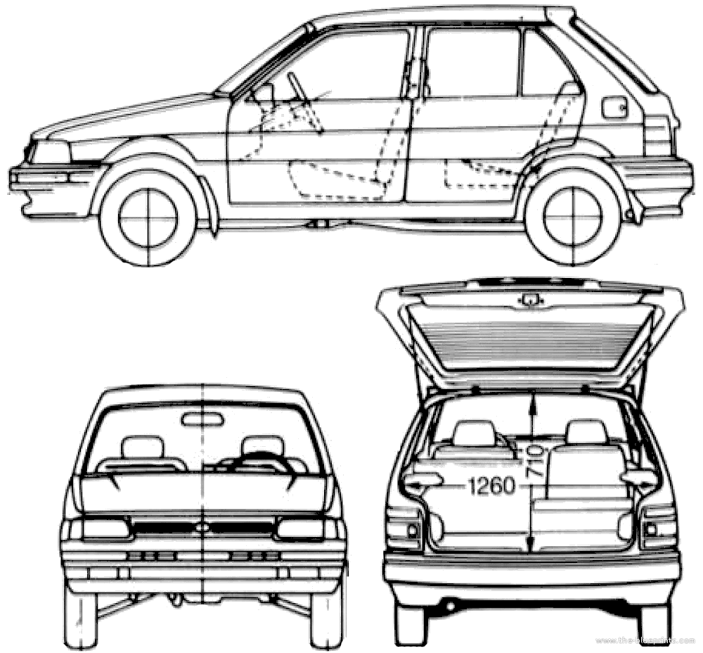 Subaru Justy 5-Door AWD (1992) - Субару - чертежи, габариты, рисунки автомобиля