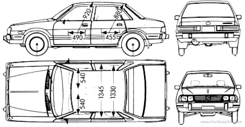 Subaru Leone 4-Door 1800 (1983) - Субару - чертежи, габариты, рисунки автомобиля
