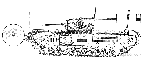 Танк Churchill AVRE with carpet rols - чертежи, габариты, рисунки