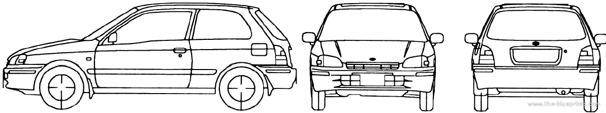 Toyota Starlet (1996) - Тойота - чертежи, габариты, рисунки автомобиля