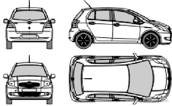 Toyota Yaris II 5-Door (2006) - Тойота - чертежи, габариты, рисунки автомобиля