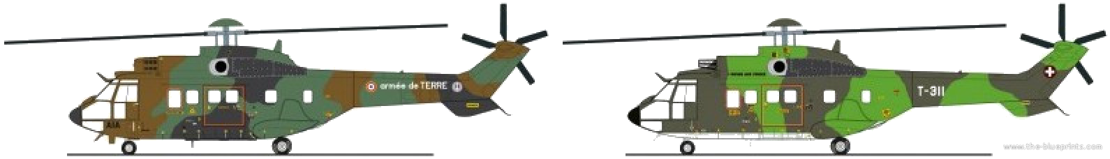 Вертолет Aerospatiale AS 332 M1 Super Puma - чертежи, габариты, рисунки