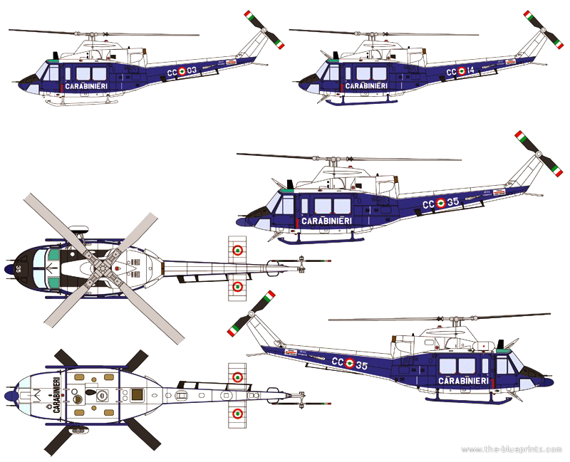 Вертолет AgustaWestland AB-412 Grifone - чертежи, габариты, рисунки
