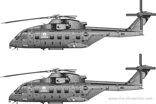 Вертолет AgustaWestland AW101 TTI - чертежи, габариты, рисунки