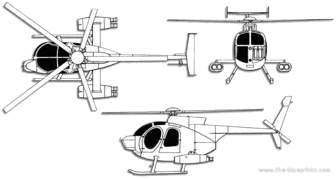 Вертолет Boeing Hughes MD-500 Defender - чертежи, габариты, рисунки
