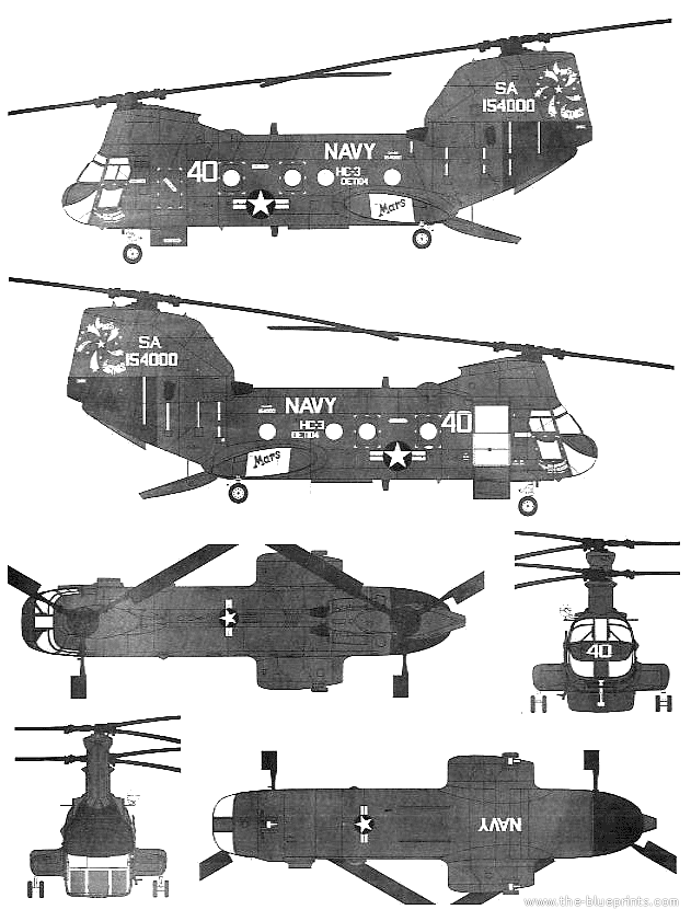 Вертолет Vertol CH-46D Seaknight - чертежи, габариты, рисунки